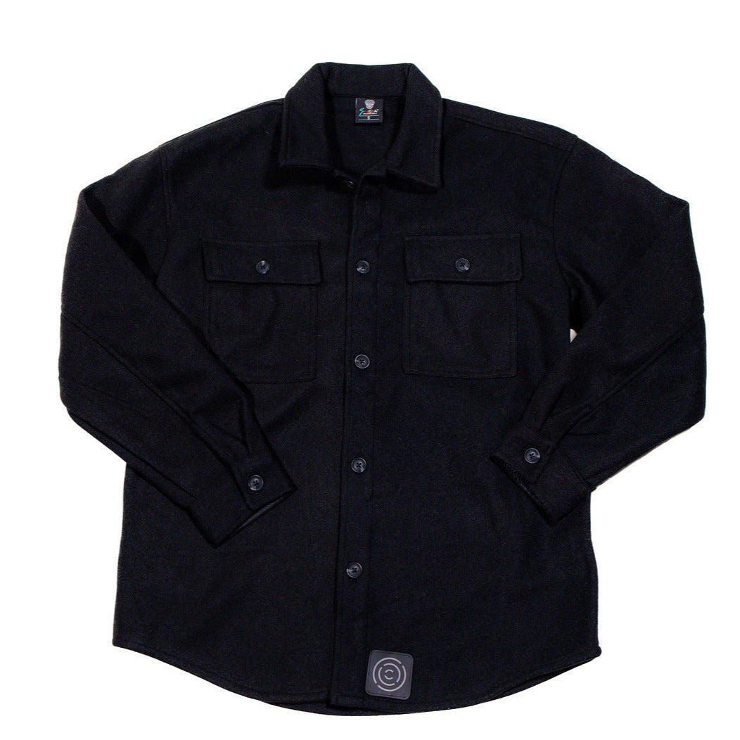 Black Wool Overshirt with CC Icon Patch